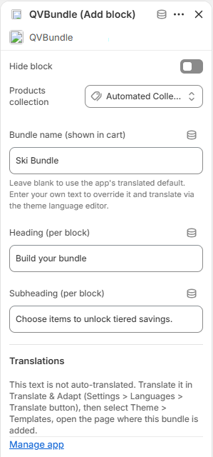 In the block settings, select the collection that contains the products you want customers to bundle.