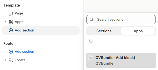 Click Add section or Add block, then select QVBundle from the Apps block list.
