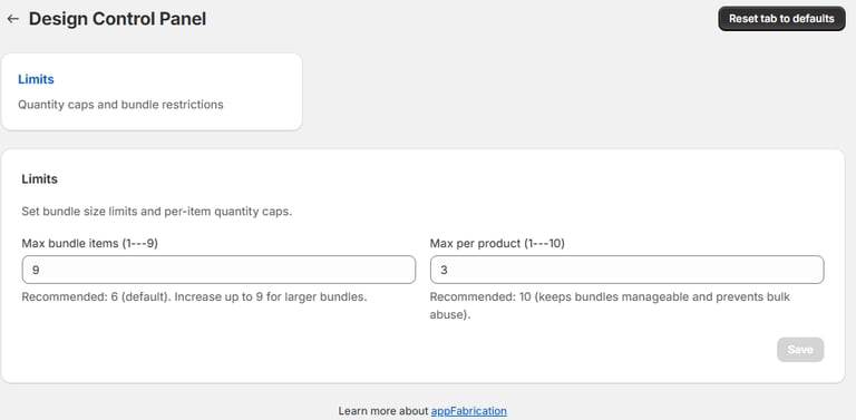 Set Bundle Limits (Maximum Items and Quantity)