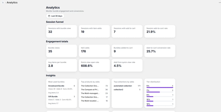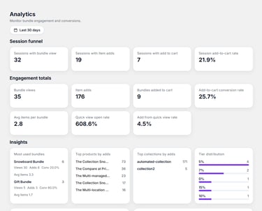 Another premium feature included is the analytics dashboard, where you can quickly review key metrics and see how your bundles are performing.